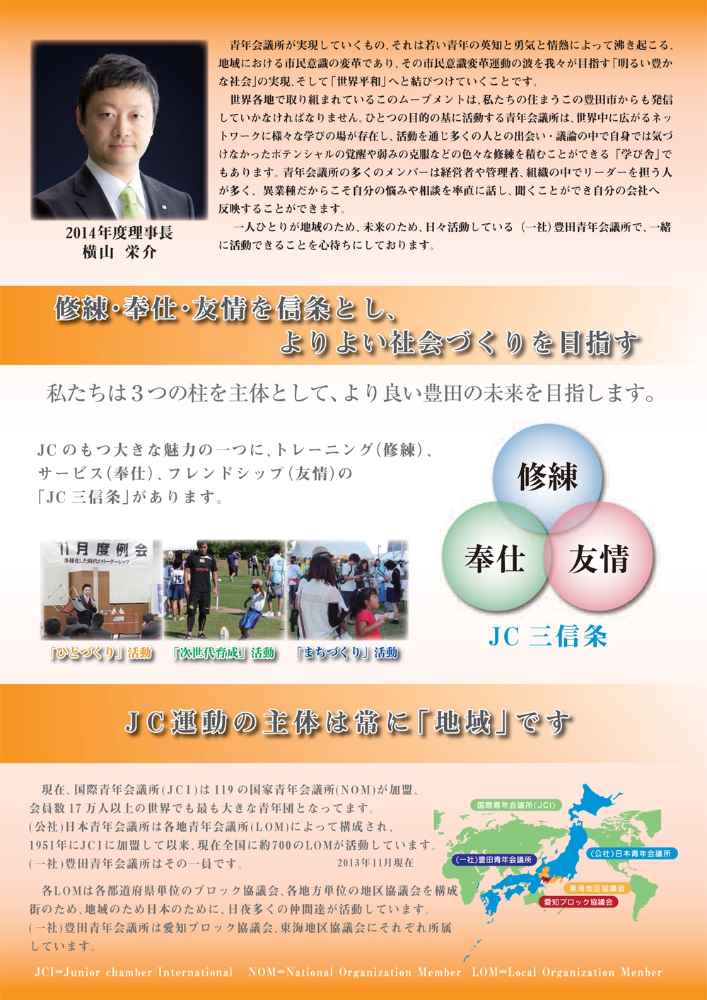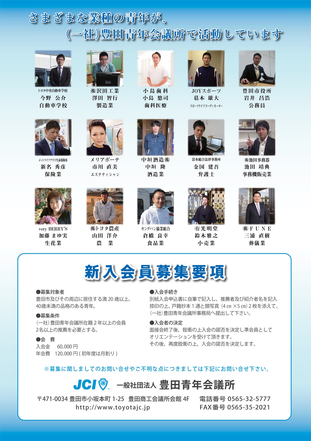 一般社団法人 豊田青年会議所〒471-8506豊田市小坂本町1-25