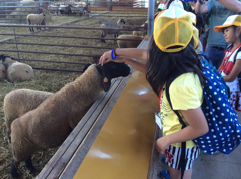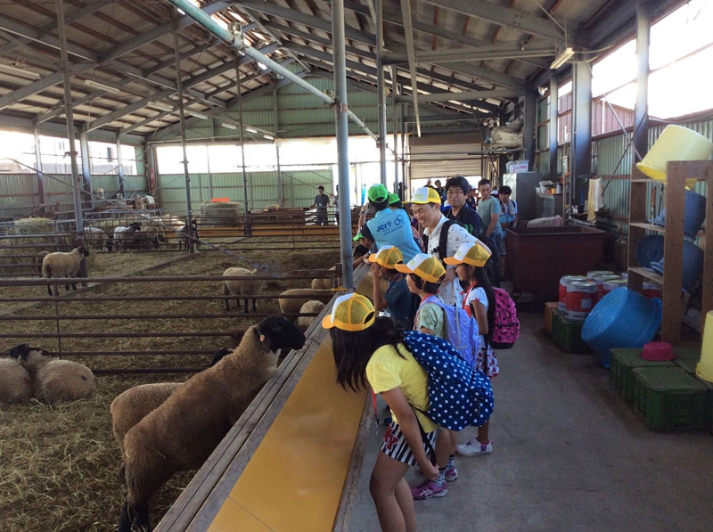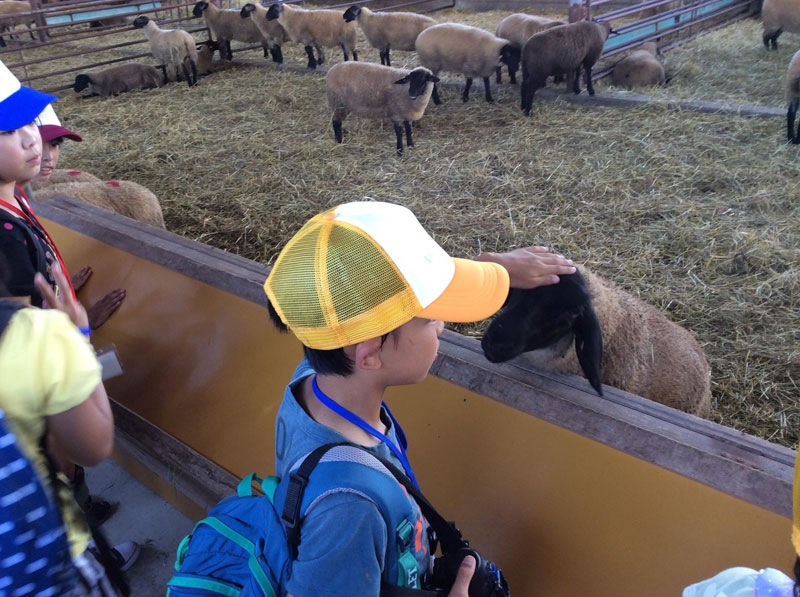 午後からは「しずお農場」にてサホークという品種の羊を見学しています。主に食肉用としてですが、顔が黒いのが特徴です。