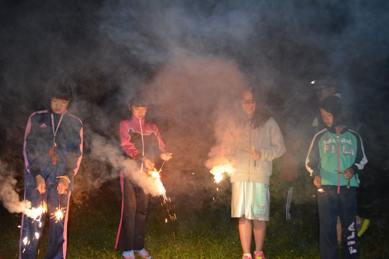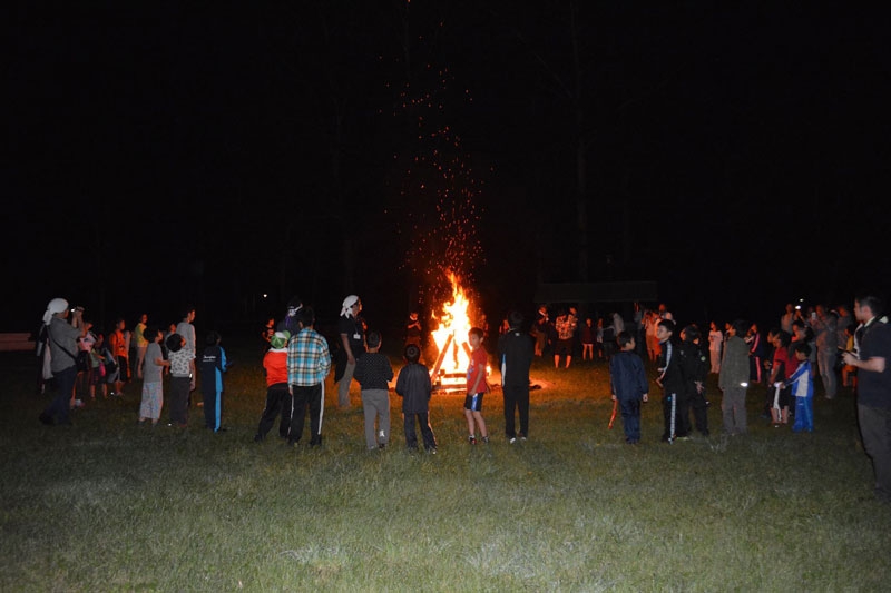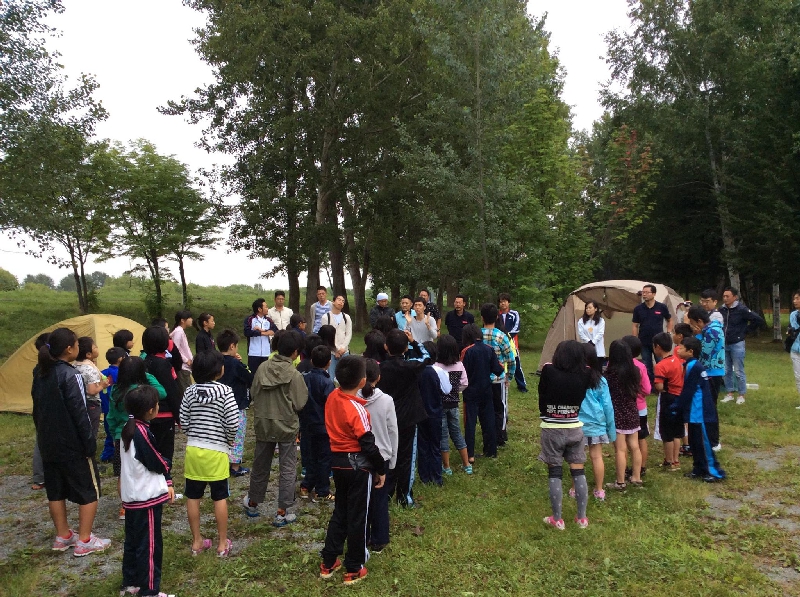 昨夜はテントで一泊した子ども達ですが5:00前には起きて朝礼に参加しました。まだ少し眠そうです…。