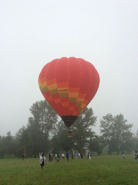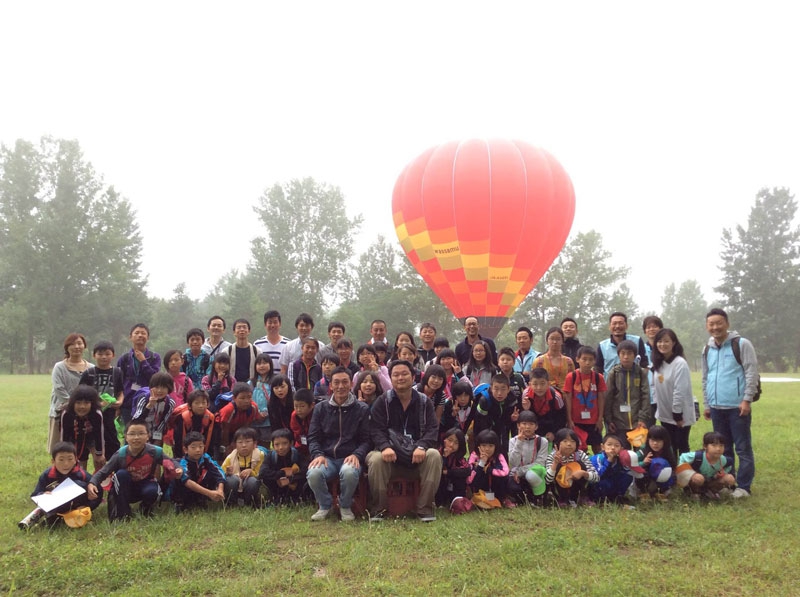 気球は風が吹くとあげることができません。その為、風が弱い早朝にあげました。