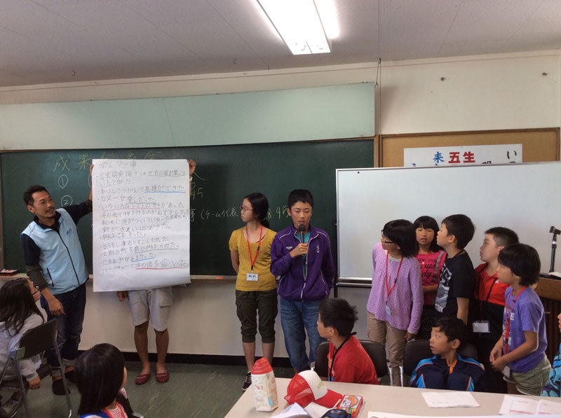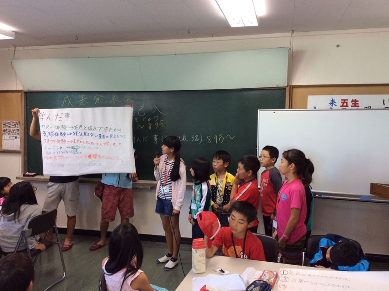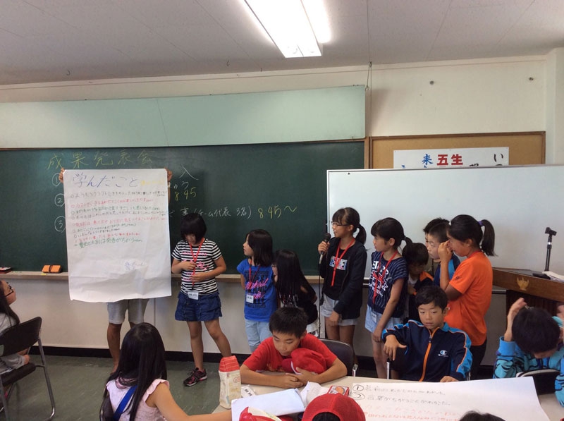 成果発表会では子ども達が3日間を振り返り「気づいたこと」・「学んだこと」を模造紙にまとめ、発表しました。