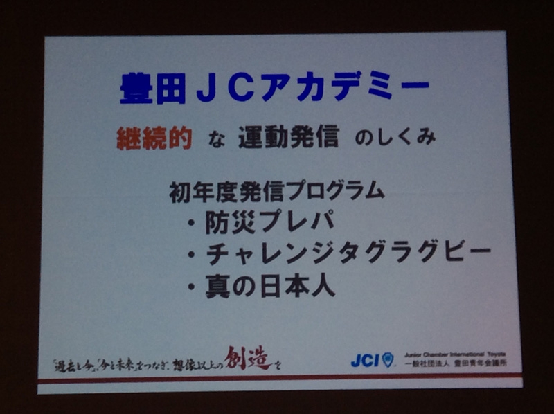 私たち(一社)豊田青年会議所は、来年の55周年から60周年を目指して、3つのプログラムを新たな「旗」として活動してまいります。ぜひ『豊田JCアカデミー』をご活用ください。