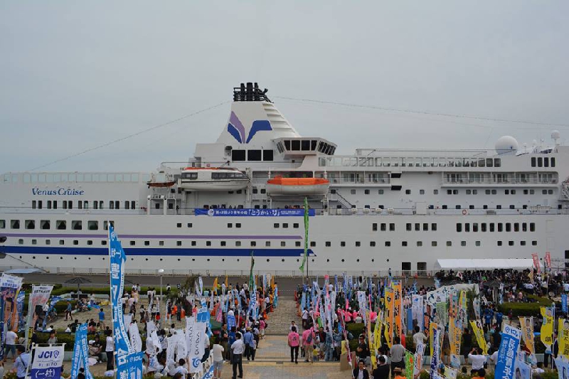 愛知・岐阜・三重・静岡 東海4県の企業よりご輩出いただいた400名の乗船者、ならびに「とうかい号」に同乗する170名のJCメンバーの激励に、多くの同僚・家族・仲間達がつどい、8日間の洋上研修に向かう「とうかい号」を見送りました。