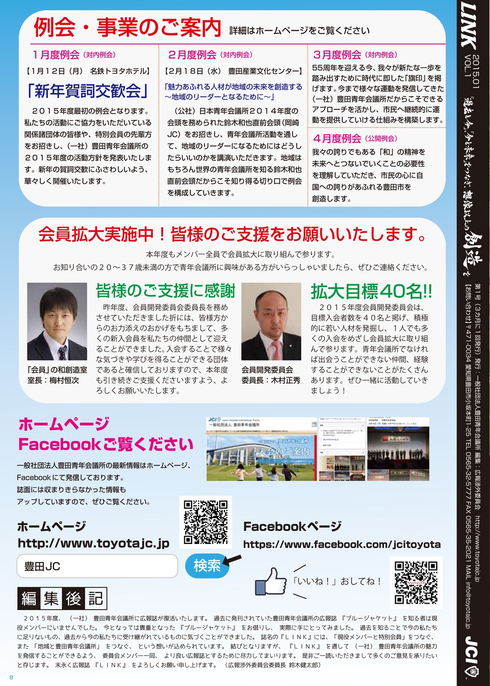 VOL8 例会・事業のご案内 まちサポ会員募集